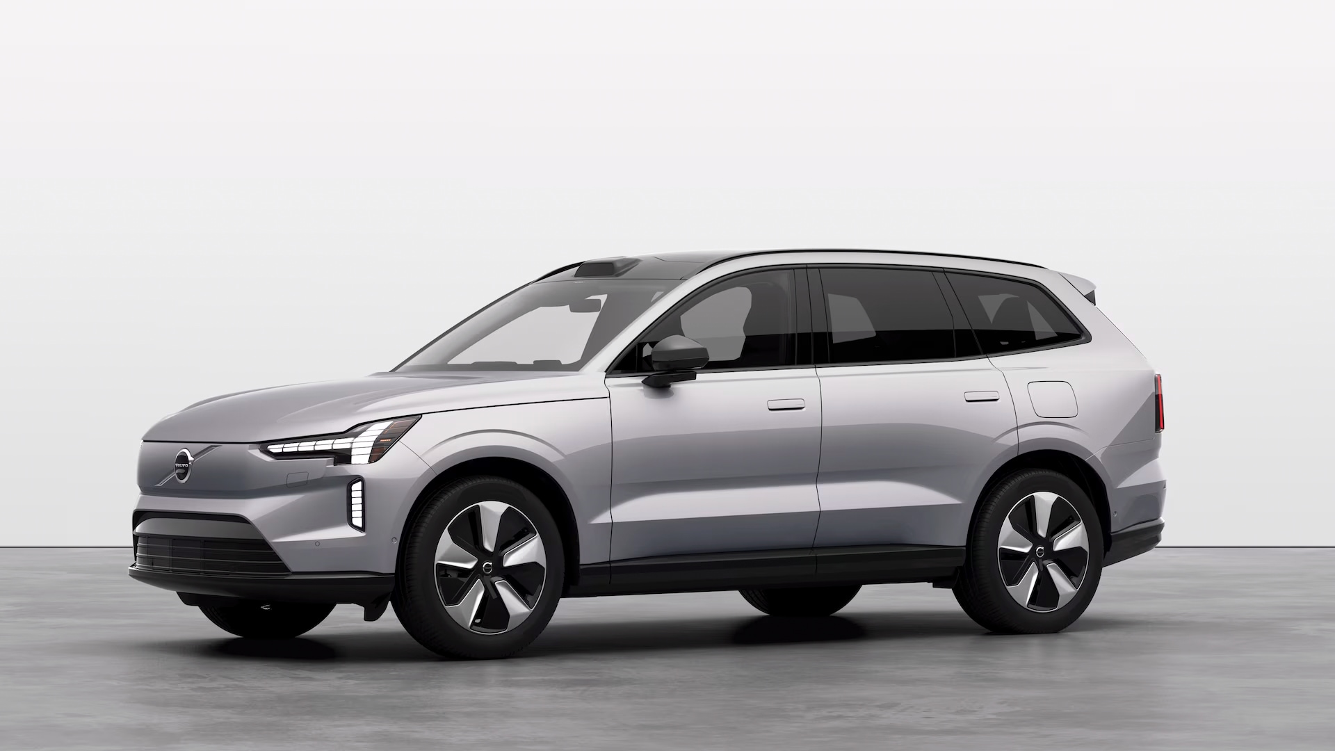 The Silver Dawn Volvo EX90 presents a refined elegance with its lighter, warmer hue compared to Vapour Grey. This color highlights the SUV's sophisticated design with a subtle yet captivating metallic sheen.