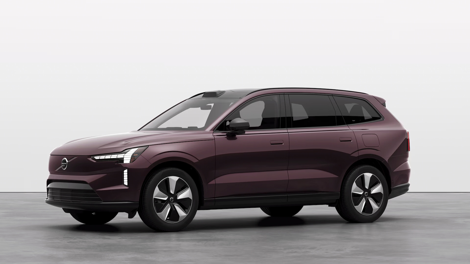 The Mulberry Volvo EX90 challenges conventional exterior vehicle colors with its deep maroon shade, capturing attention both on and off the road. This color adds a sporty and assertive aesthetic to the SUV, commanding a strong presence.